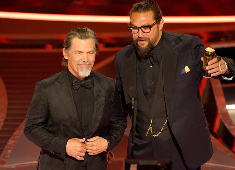 Through the years Josh Brolin, left, and Jason Momoa present the award for best sound at the Oscars on Sunday, March 27, 2022, at the Dolby Theatre in Los Angeles. (AP Photo/Chris Pizzello) (Chris Pizzello/Chris Pizzello/Invision/AP)
