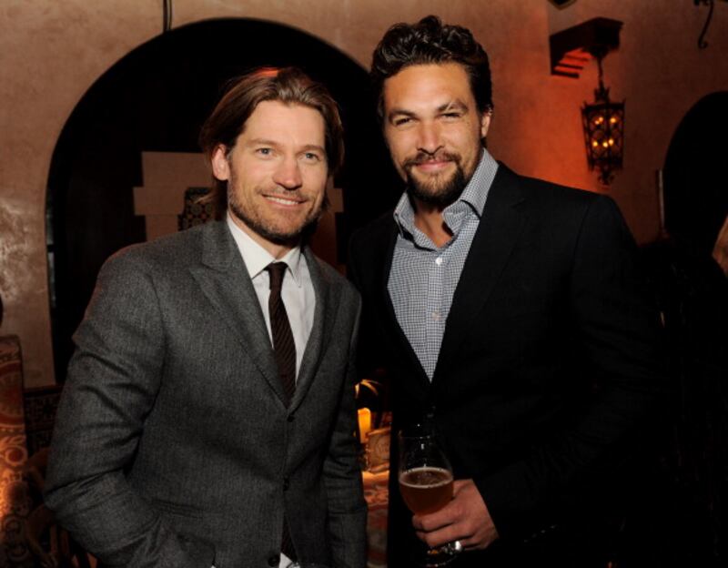 Actors Nikolaj Coster-Waldau (L) and Jason Momoa pose at the after party for the premiere of HBO' "Game Of Thrones" at the Roosevelt Hotel on March 18, 2013 in Los Angeles, California.