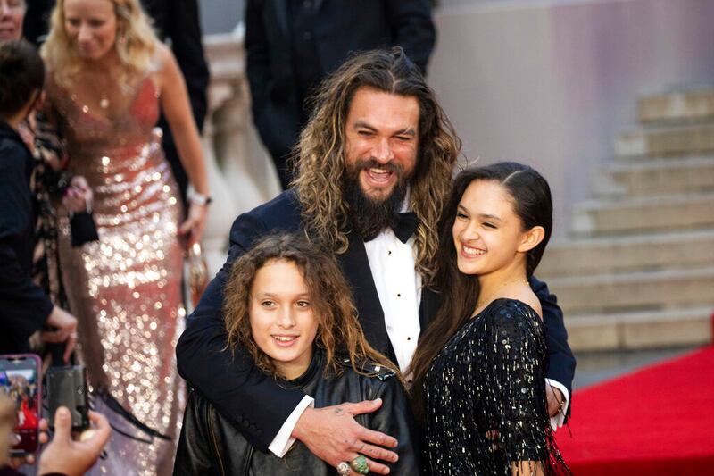 Through the years Jason Momoa and his children pose for photographers upon arrival for the World premiere of the new film from the James Bond franchise 'No Time To Die', in London Tuesday, Sept. 28, 2021. (Photo by Vianney Le Caer/Invision/AP) (Vianney Le Caer/Vianney Le Caer/Invision/AP)